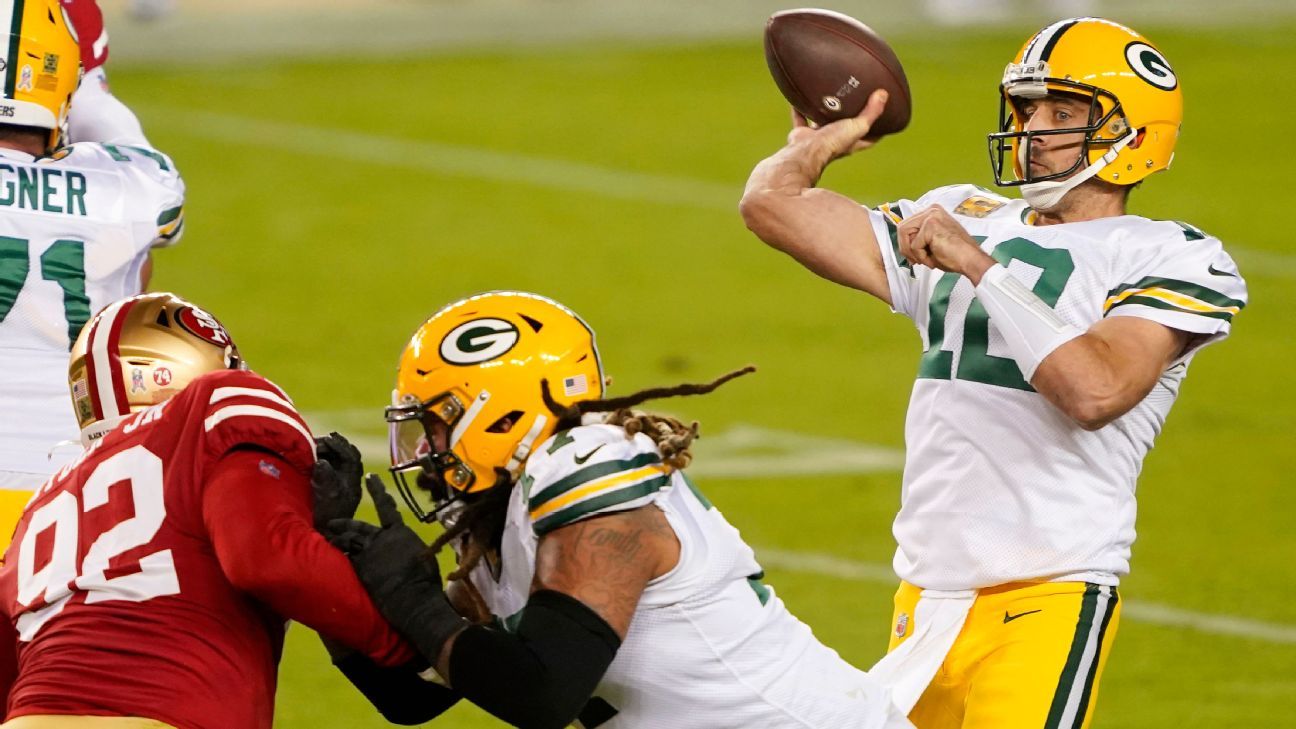 Packers' Aaron Rodgers throws three TDs in first half, including perfect toss to Davante Adams
